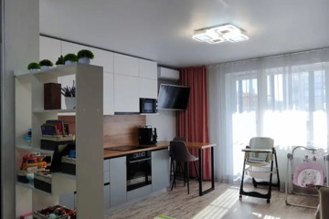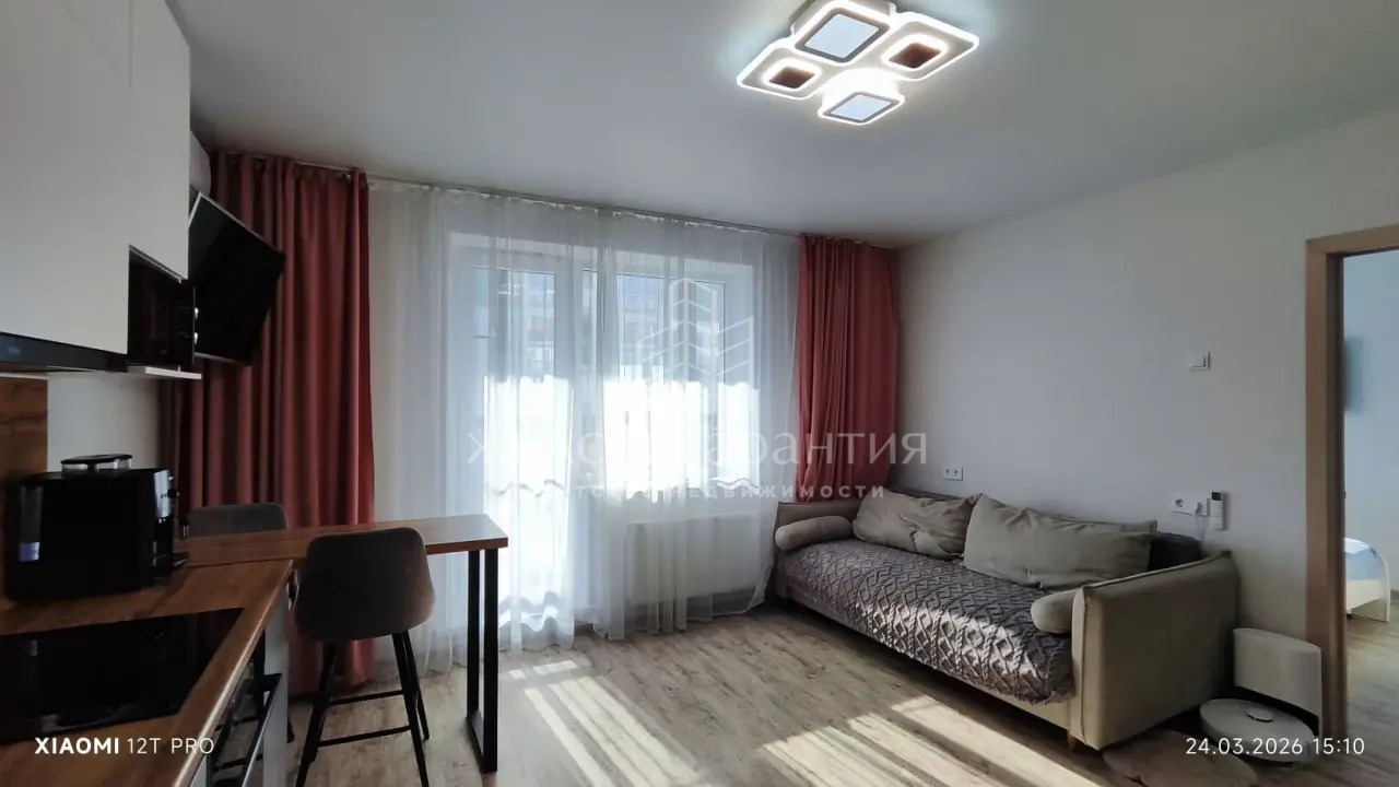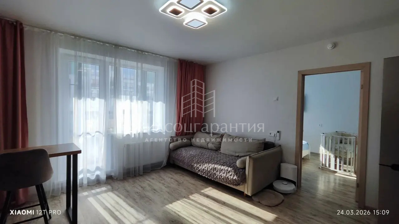 Продается с мебелью (кухонный гарнитур, встроенный шкаф в коридоре остаётся, встроенный шкаф в спальне и комод входит в стоимость).