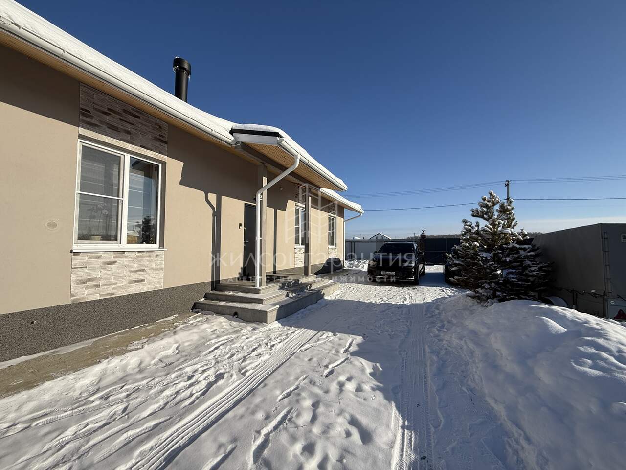 Дом построен из газоблока 300, утепление на 100 плюс мокрый фасад с вставками из натурального камня.